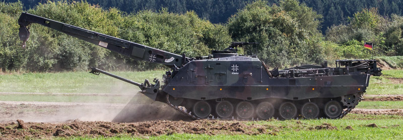 The recovery tank was developed from Germany in cooperation with the Netherlands at the end of the 1980s. Today it marks the standard recovering vehicle of the German tank battalions and parts of the artillery troop. A total of 75 Büffel were produced for the Bundeswehr, 25 for the Royal Netherlands Army and lately 25 for Switzerland. In 2002, Greece was ordering 12 vehicles, which have been delivered already. Another 16 went to Spain. Last but not least, Austria was renting 2 Büffel from the Netherlands, which were returned in 2007.