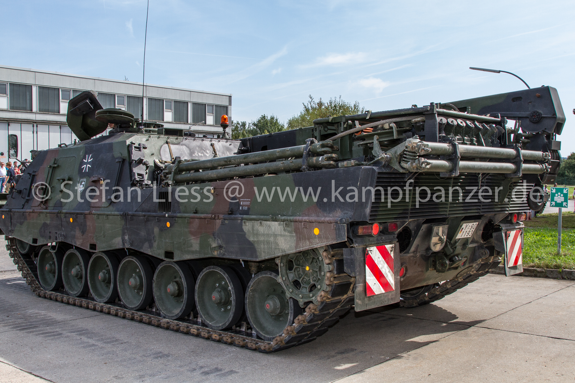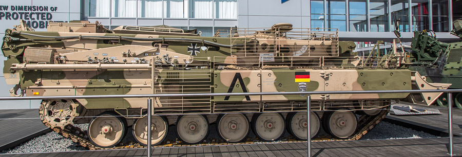 A major change is the increased crew's protection. An additional layer of armour material has been mounted at the crew's compartment. The AA-MG at the commander's hatch can be remotely controlled. The normal SGD used at the Büffel are replaced by the GALIX self-defence system.
