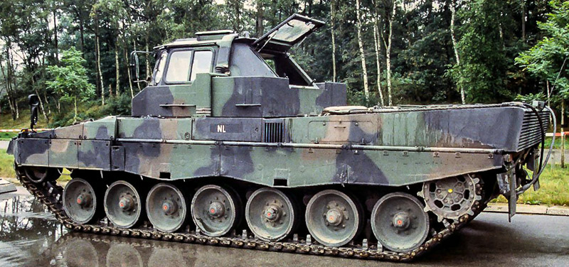 The Leopard 2NL driving school tank is used by the Dutch Army to train Leopard 2 drivers. The vehicle is similar to the German version, but it lacks the main gun mock up. The tank is also used by the Austrian Army.
