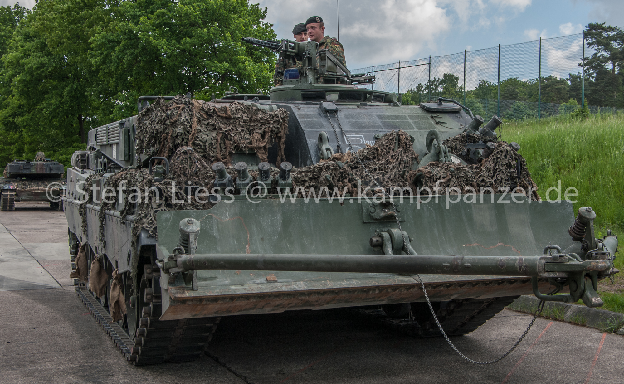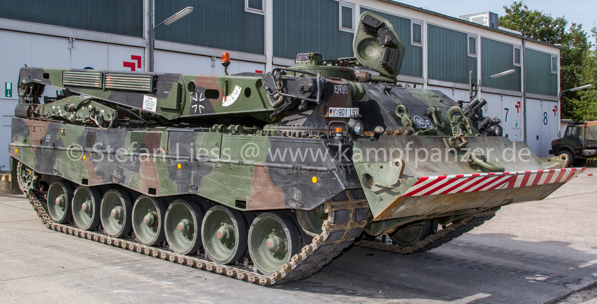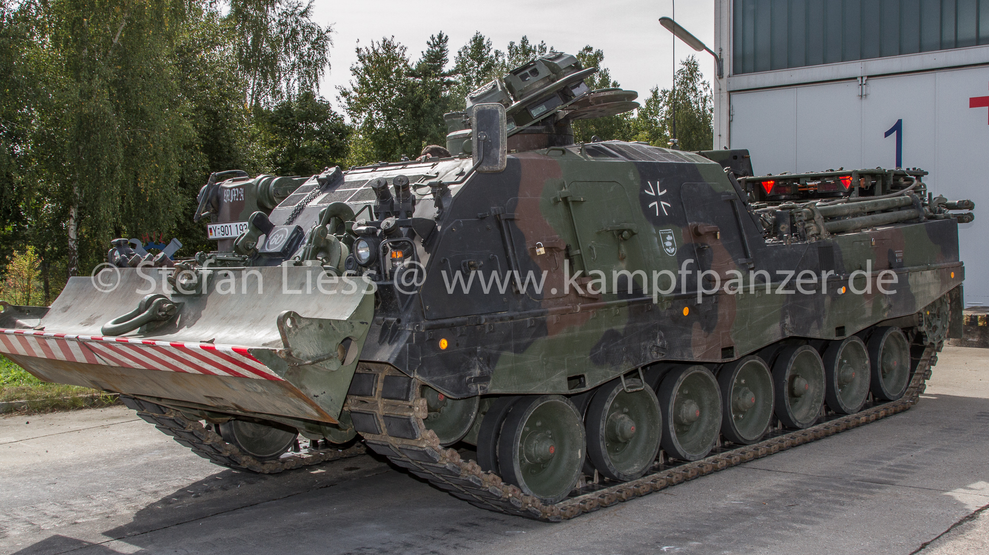 The ISAF version of the Büffel has been adjusted to a theater with multiple anti tank threats. Therefore the tank has been updated with additional protection packages. These cover the usage of new side skirts, heavy armour blocks on the frontal sides, the addition of slat armour all around the vehicle and the mounting of additional anti mine protection as seen on the Leopard 2A6M.