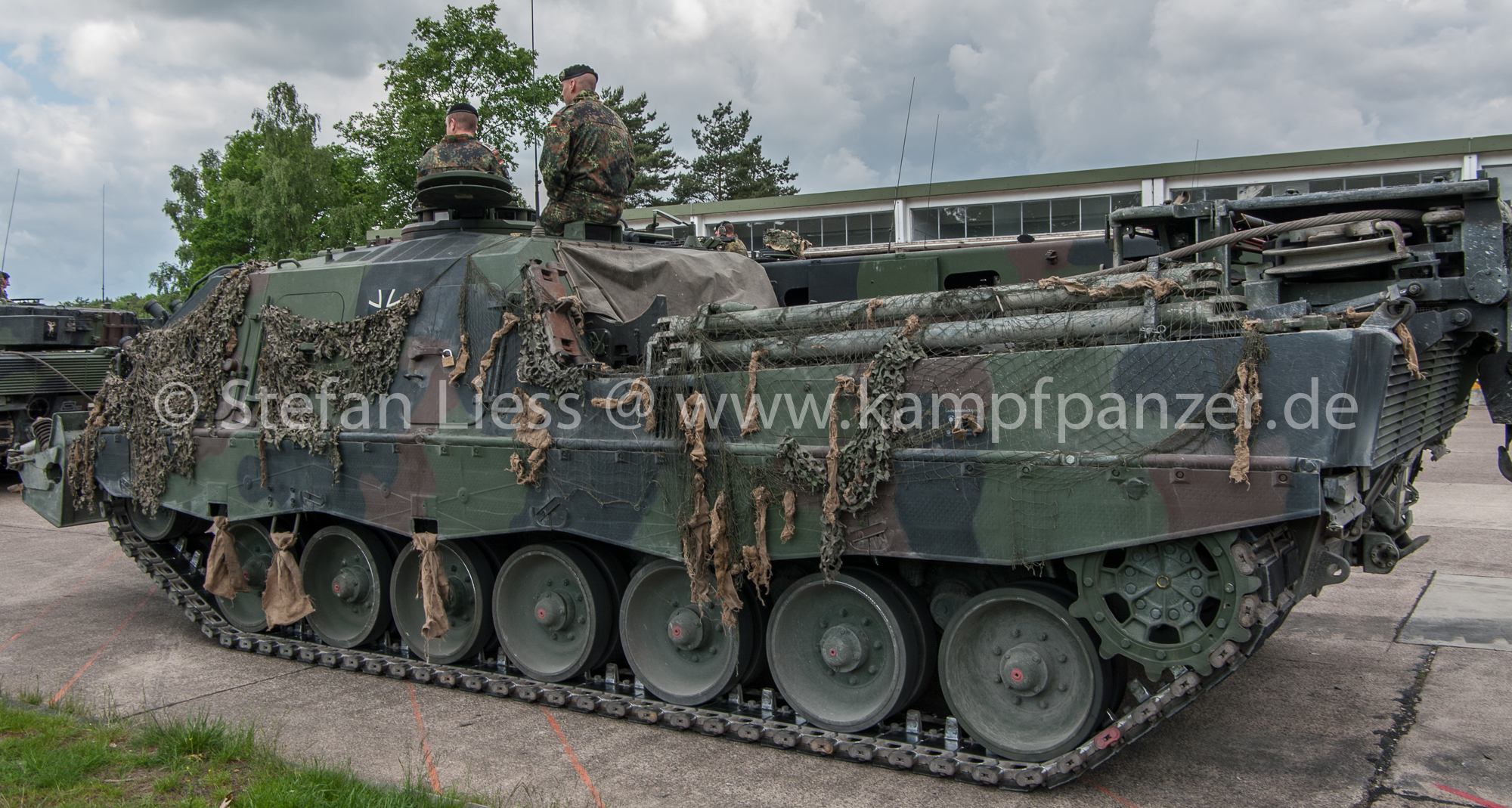 The modified vehicles have been used as part of the German Army engagement in Afghanistan. After the return, the slat armour and the massive side skirts will be removed.